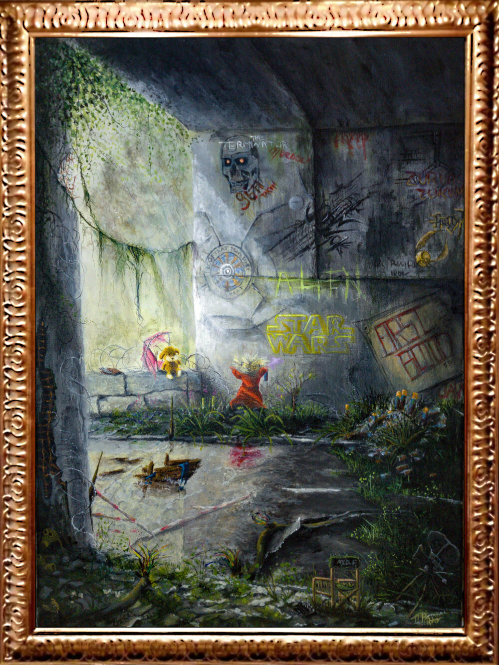 Das Werk zeigt den urbanen Raum unter einer Brücke als Ort kreativer Aneignung und poetischen Widerstands. Durch die Verbindung von Street Art, filmischen Zitaten und einer symbolisch aufgeladenen Lichtführung entsteht eine zeitgenössische Bildsprache, in der Fantasie und Kunst den öffentlichen Raum neu definieren.